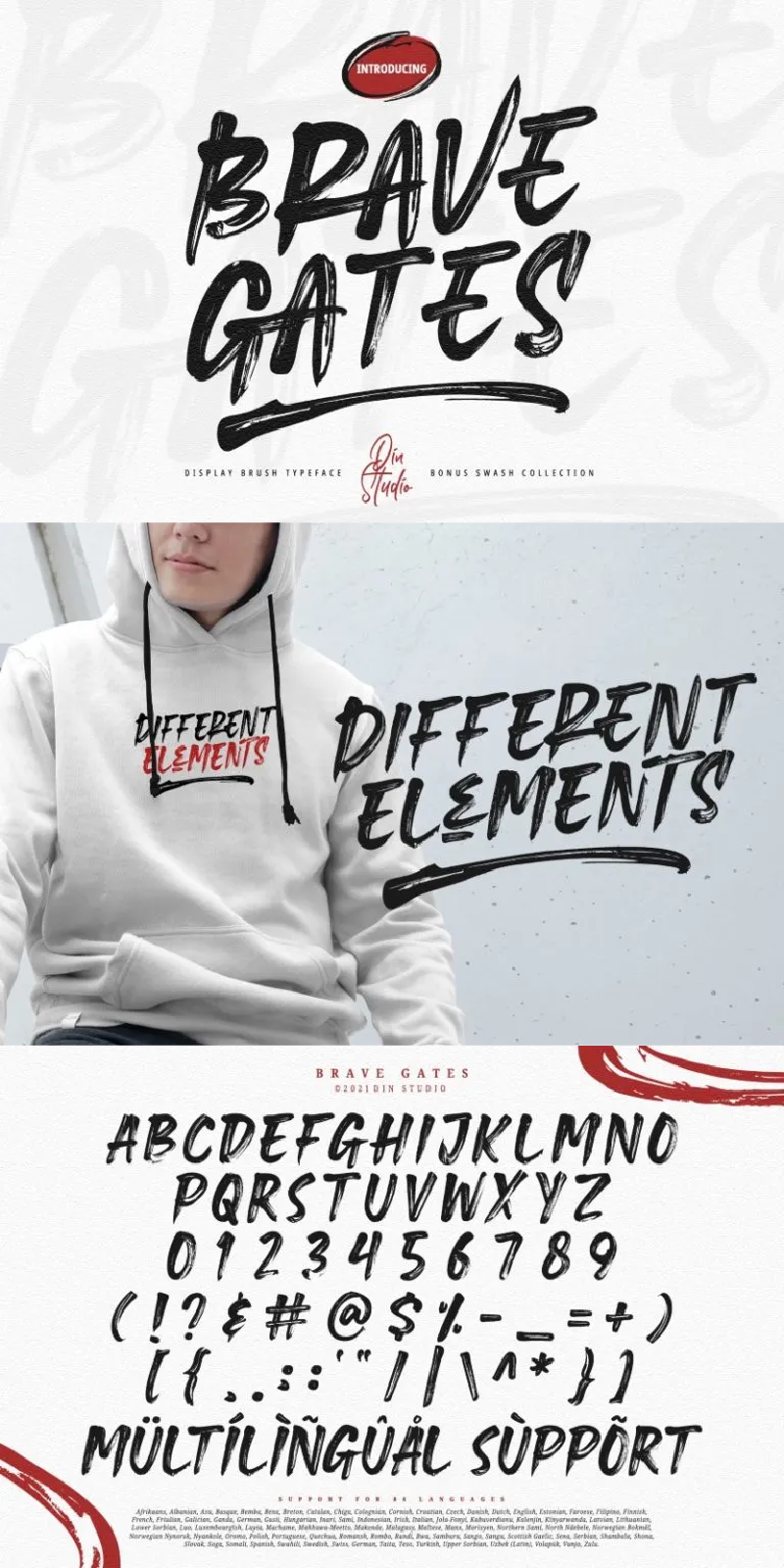Brave Gates is a gorgeous uppercase display brush font, designed with the modern vibe. This bold brush font is perfect for anything indie, adventurous, and direct. Every swash, stroke, and curve was created to entice happiness and elegance. A real head-turner for your presentation, designs, website illustrations, and much more.