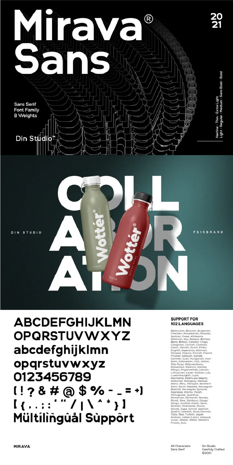 Link to Purchase for Commercial Use: https://din-studio.com/product/mirava-sans/