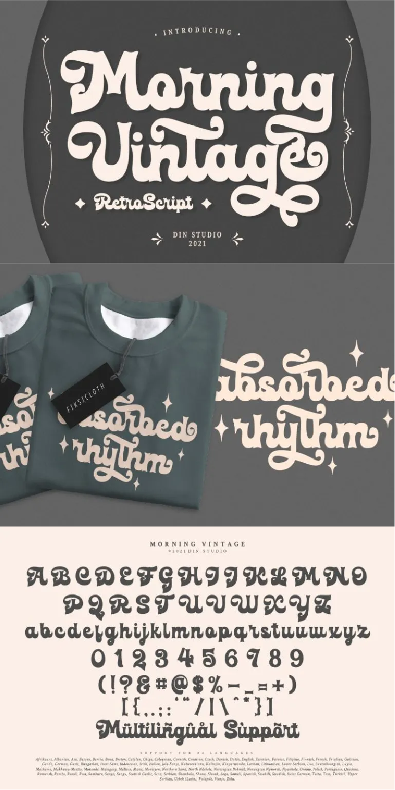Morning Vintage, a Script Font, is a handcrafted font inspired by designs and illustrations from urban styles, an excellent choice to add the right amount of street and retro vibes. It is perfect for social media branding projects, fashion designs, printed quotes, packaging, and a stylish text overlaying any background images.