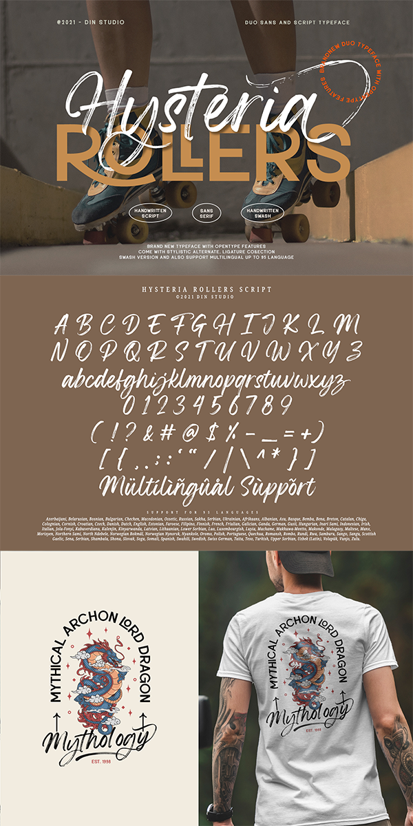 Hysteria Rollers is a fantastic font duo. The duo consists of an uppercase sans serif font accompanied by a gorgeous handcrafted script brush font that works together in a perfect harmony. Designed primarily as a captivating font to add the right amount of modernity and style. This font duo is an excellent choice to ensure a great font match for your designs and projects!