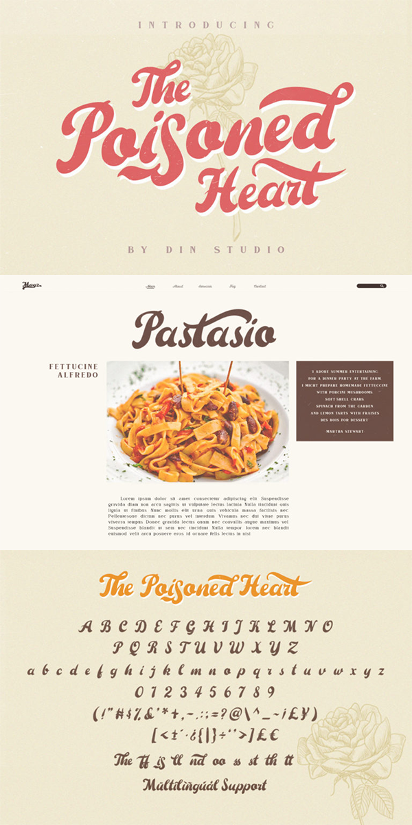 The Poisoned Heart Script. The beautiful retro script. Made with naturally handwritten. The font will make your design more beautiful and powerful. This font is suitable for any design like branding, quotes, wedding invitation, lettering project and etc.