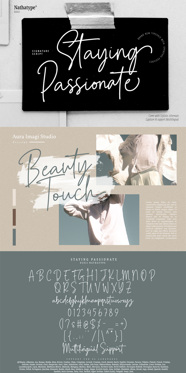 Staying Passionate font includes Multilingual Options to make your brandings globally acceptable. See the previews above to get to know how to use them. Happy designing