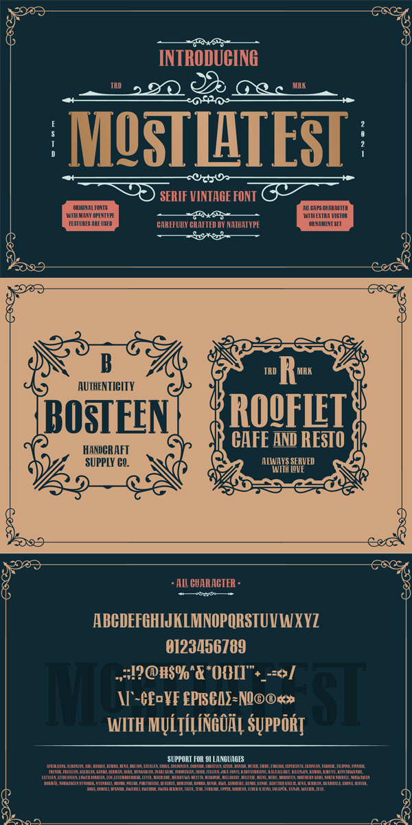 Link to Purchase for Commercial Use: https://nathatype.com/product/mostlatest-serif-vintage-font/