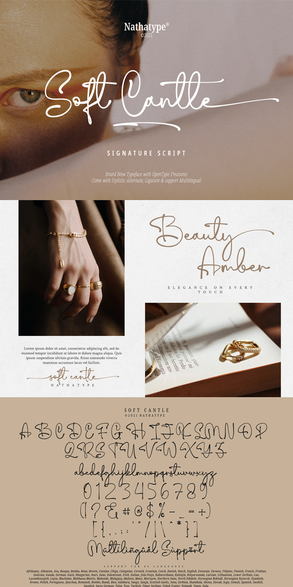 Soft Cantle is a handcrafted font designed to bring your branding to life and add a touch of elegance, modernity and style. It is perfect for social media branding projects, fashion designs, printed quotes, packagings, or even as a stylish text overlaying any background images.