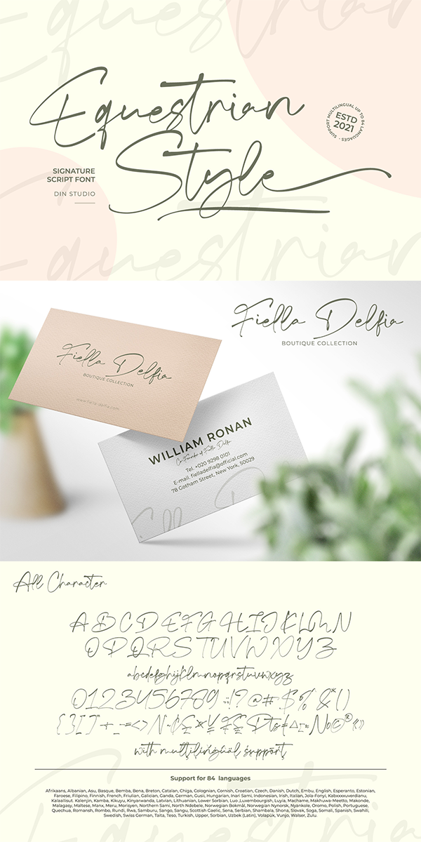 Equestrian Style is a handcrafted font designed to bring your branding to life and add a touch of elegance, modernity, and style. Every swash, stroke, and curve is created to entice happiness and elegance. This is absolutely the best choice for your logo, book cover, poster, t-shirt, branding, and advertisement needs.