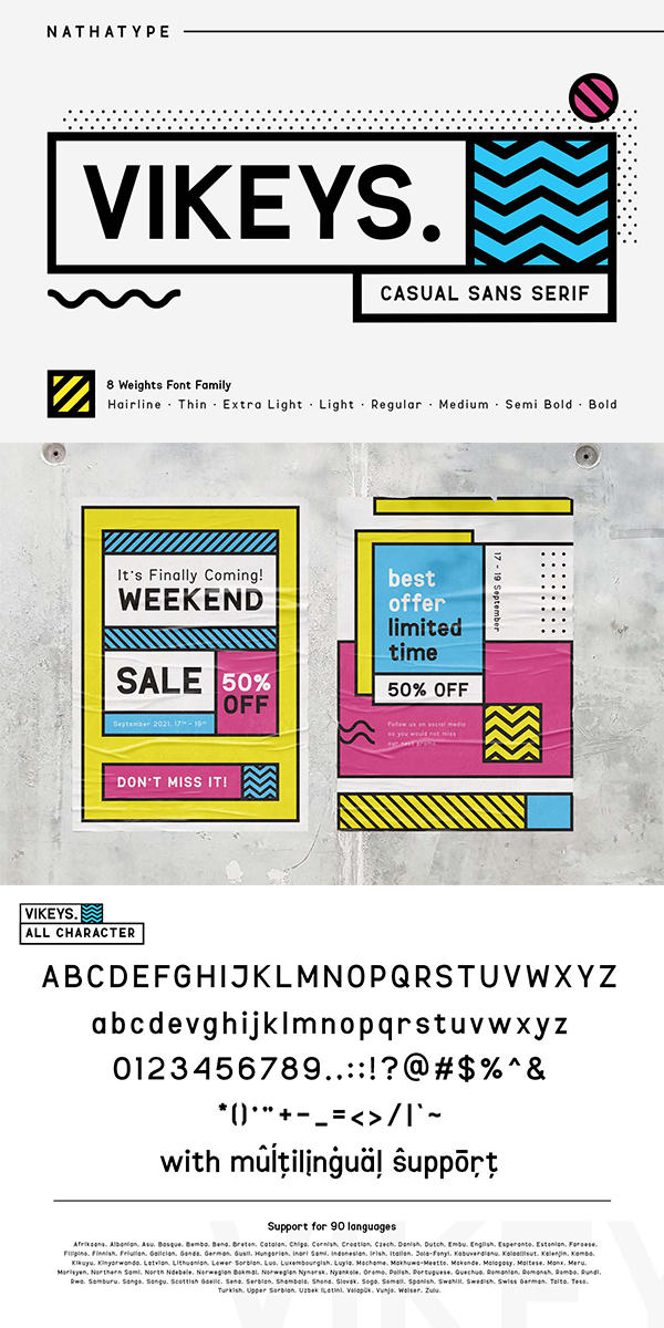 When we have plenty of options for you, then why don’t we give them all? Vikeys is a package to maximize your designs with stylish fonts from its variety of options making you feel happy to use it. The fonts made in the uppercases and the lower cases are convenient for your eyes to see and easy to read. This font is designed to bring your branding to life and adds a touch of modernity, fun and style. It’s perfect to create amazing headings, logos, menus, social media graphics, etc.