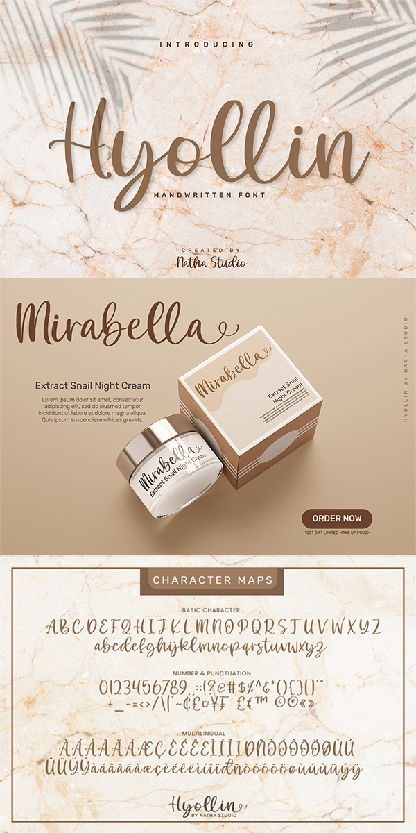 Hyollin is a lovely handwritten font. It brings a beautiful and attractive typeface. Made for any professional projects. This font will look amazing in wedding invitations and greeting cards to social media quotes, branding, and more!