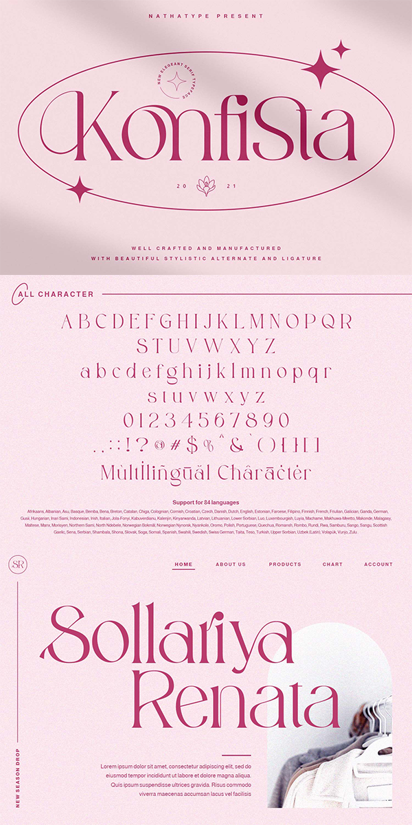 Konfitsta is one of the most stylish fonts designed to create the perfect contrast between your headings and body copy. Bring your branding to life and add a touch of modernity and style with Konfista. It is ideally applicable for your social media banners, posts, ads, printed quotes, t-shirt designs, packagings, or even modern texts overlaying any background images.