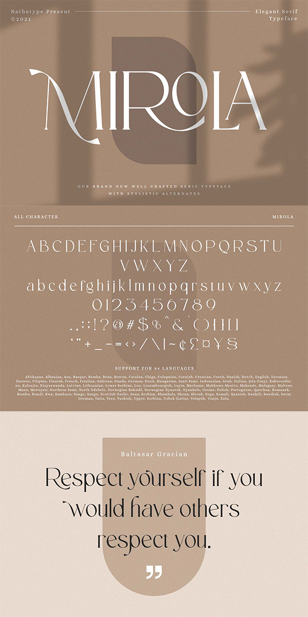 Mirola is a serif used in modern styles. It fits your designs. It’s effortlessly beautiful and undoubtedly gorgeous. It’s brave to face uncertainty. These all represent you. Go ahead and use it on your websites, social media brandings, Pinterest banners, printed invitations, and more!