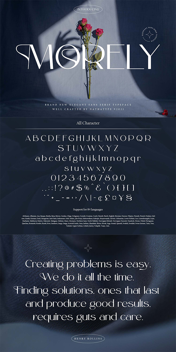 Morely is one of the most elegant, exquisite yet strong font designs with modern vibes. This is a timeless font that will always fit your audience, clients, guests or anyone around you. It’s a really head-turning font for your presentations, designs, website illustrations, etc.