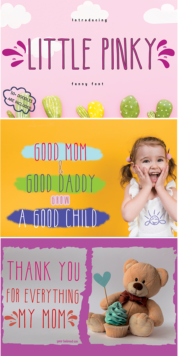Little Pinky embodies fun, quirkiness and authenticity. This enchanting handwritten font will turn any creative idea into a true standout. Get creative with its childlike playfulness, and use it to brighten up any kids and school project!