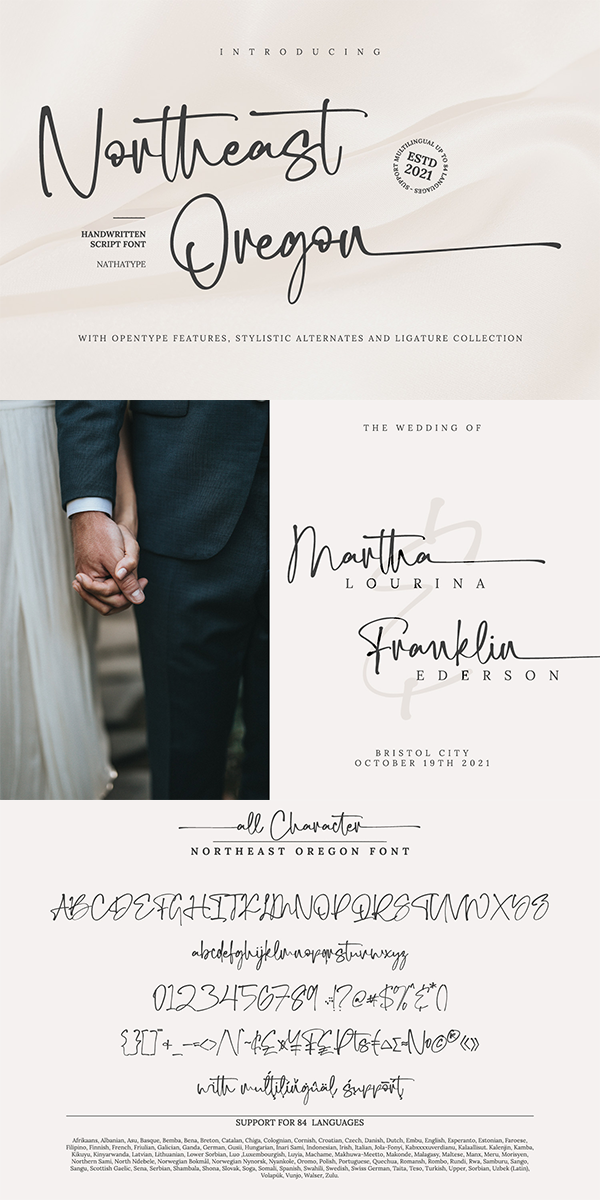 Northeast Oregon is a elegant designed with a modern vibe. It brings charming curves and satisfying patterns This handwritten font is perfect for anything beautiful and neat.. A real head-turner for your presentation, designs, branding, quotes, invitation, website illustrations, and much more.