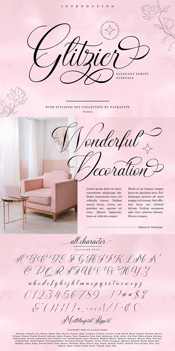 Font support has an OpenType feature which can be opened by various graphic software, such as, Adobe Illustrator, Adobe Photoshop, Adobe Indesign, and Corel Draw.