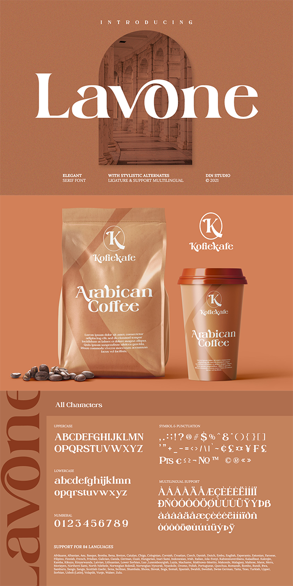 Lavone is a elegant serif typeface. Designed primarily as a captivating handcrafted with style. This typeface that is easy on the eyes font that excels at captivating headlines, or large branding text, the font oozes that cute aesthetic that just makes you go “aww!”