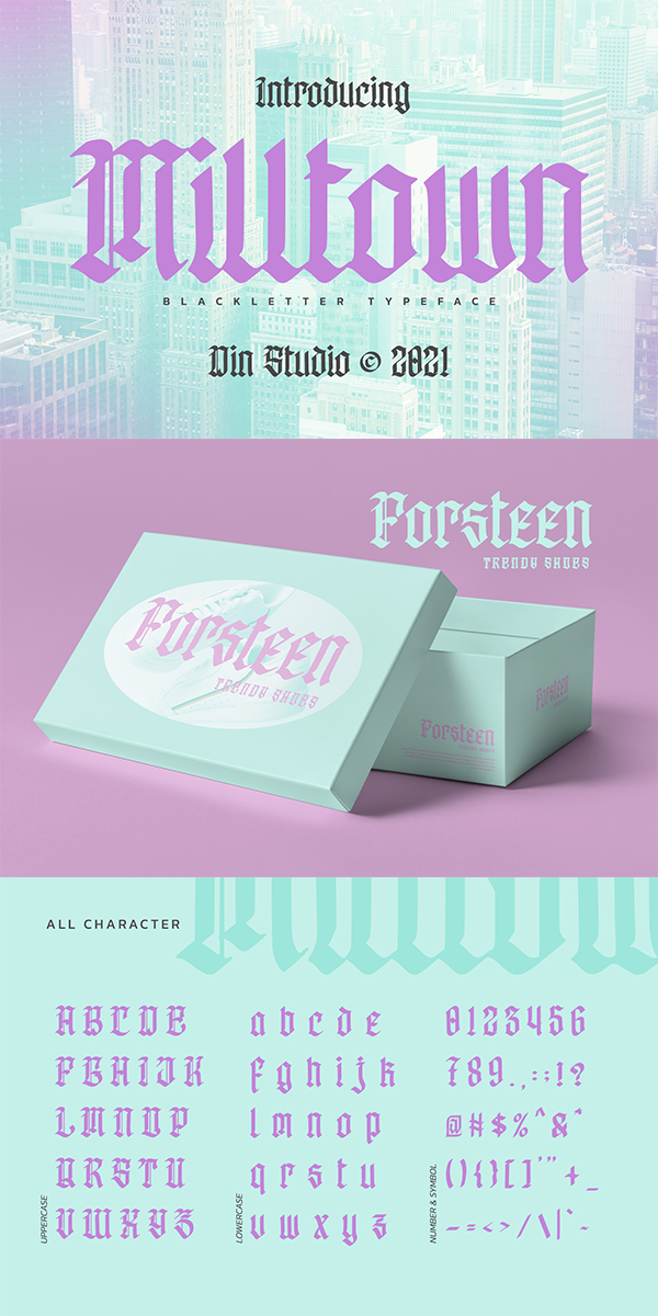 Milltown is made to bring out a modern and stylish view of what you make. This typeface with artistic style looks very interesting for loads of different projects and promotions. A great all-in-one package for your logo, book cover, poster, t-shirt, branding, and advertisement needs.