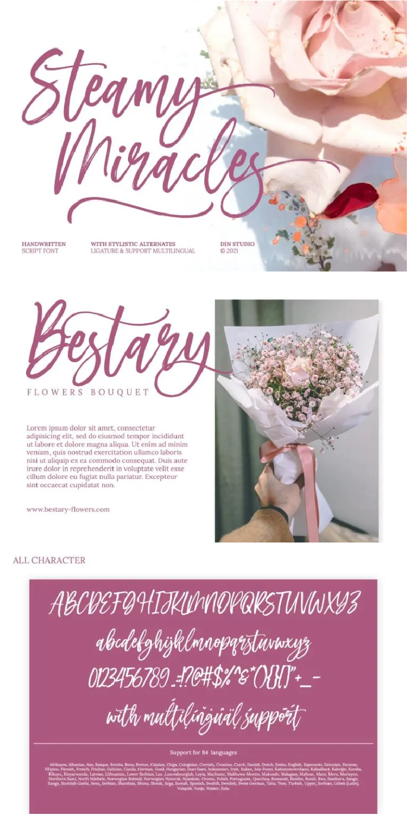 Steamy Miracles is a handwritten script font which is a mixture of incredible drama and gracefulness to clearly express a modern design. Each letter’s details show some curvy, sharp strokes on the edges. Due to its great legibility, you may apply this font for either bigger- or smaller-sized texts.