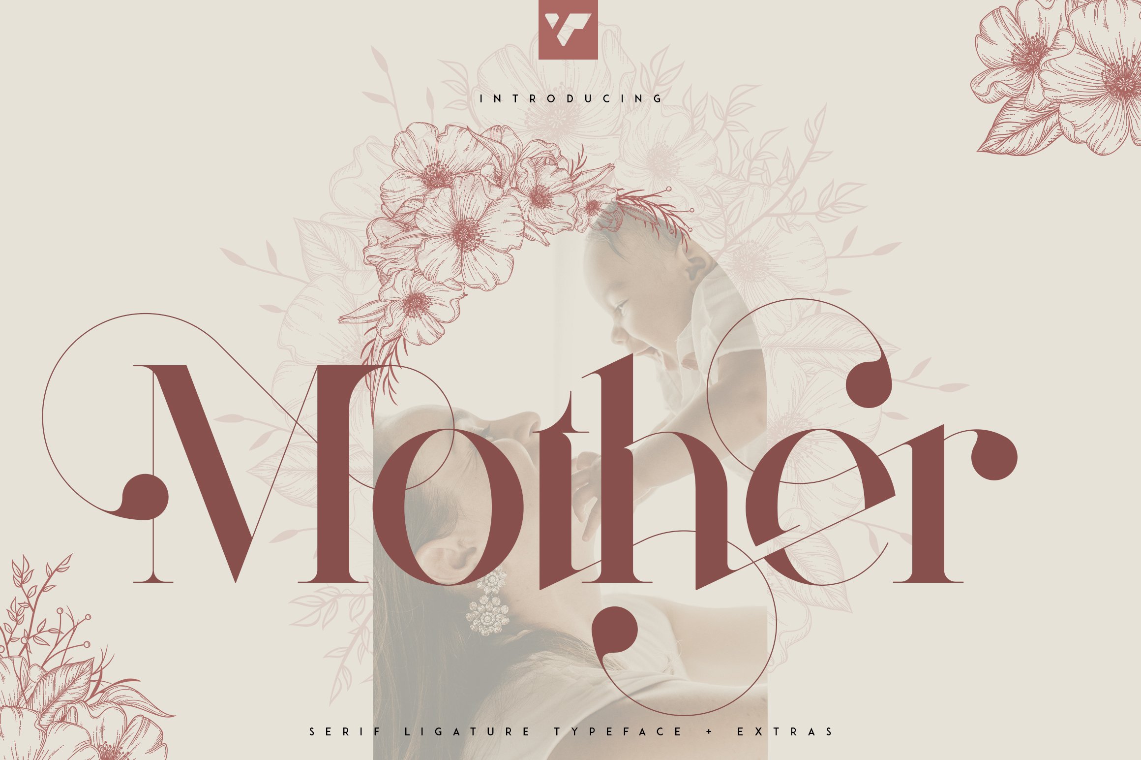 Mother Serif Font is named after all the moms and children left behind. This typeface is feminine, fragile typeface with 5 fonts loaded with ligature glyphs, alternates and multilingual support to enchant your next project. Added and frames, bouquets and floral elements. Very versatile fonts that works great in large and small sizes.