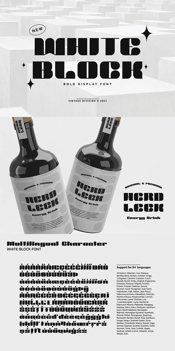 White Block is a bold display font with a modern look. This display font is perfect for anything adventurous, and direct. Designed primarily as a captivating font that easy to read but still stylish, A real head-turner for your presentation, designs, branding, quotes, invitation, website illustrations, and much more.