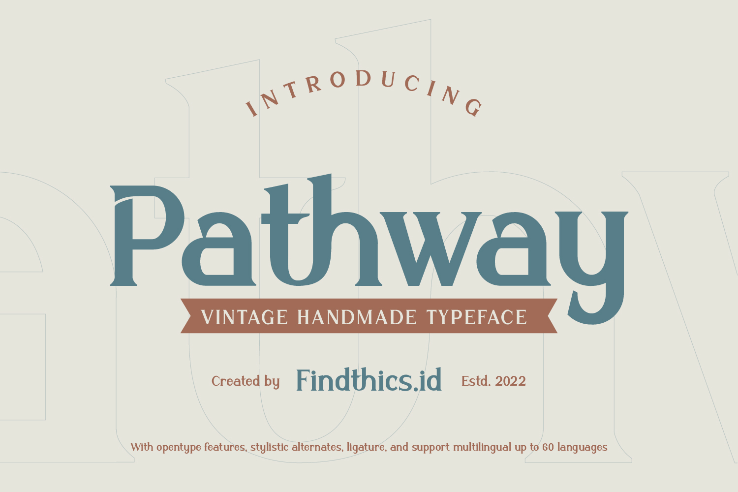 Pathway is a vintage serif font. Create from our talented font designer. The design of typeface will make your design more beautiful and inspiring. This font will suitable for any project, like branding, print template, logo and etc.