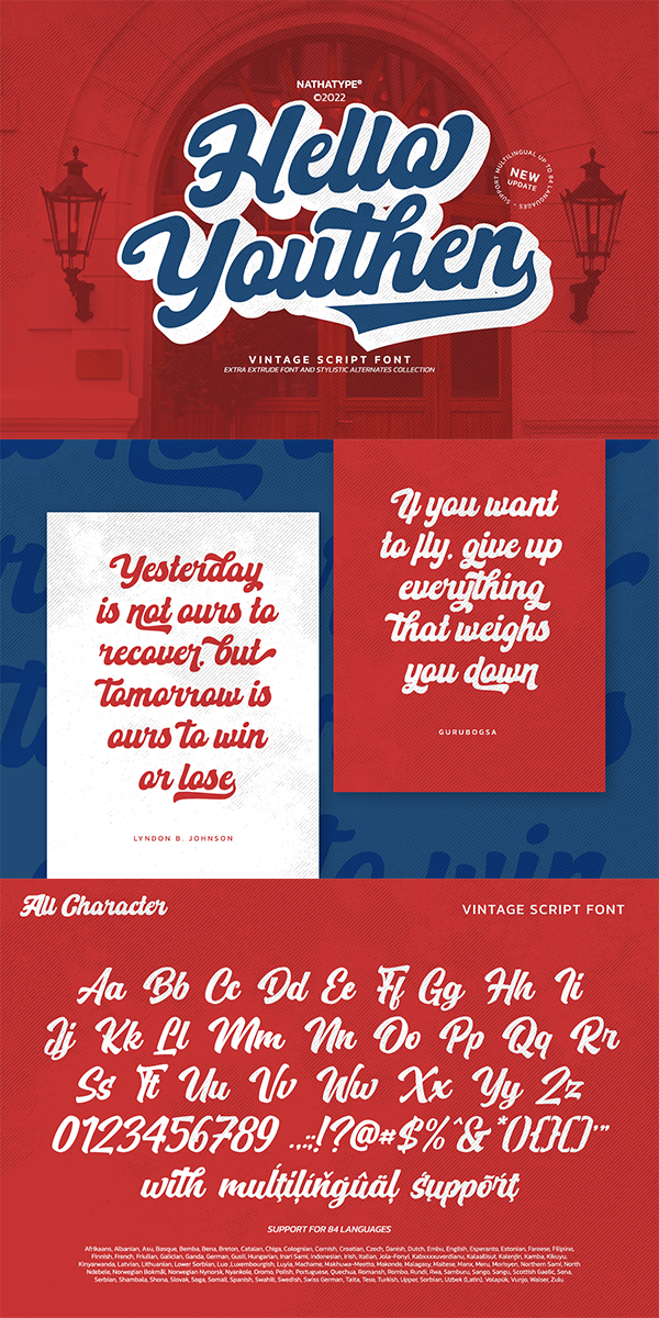 Hello Youthen is a script font that comes with exquisite character changes, a kind of classic decorative copper script with a modern twist, designed with high detail for a fun style.