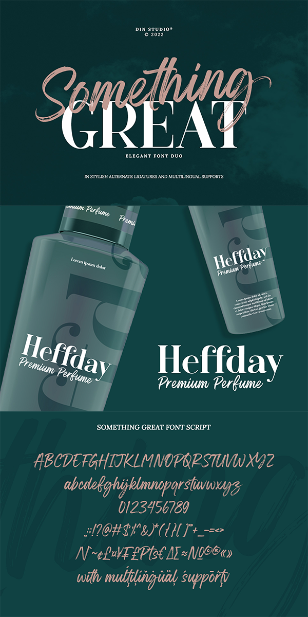 Get them the beautiful Something Great., a beautiful font duo. Through the script font, Something Great brings your design to delve deep into the world of elegance, while the serif font creates modern look. This font duo can be combined as a splendid set, or worn separately, with each possessing a head-turning magnificence of its own. It is perfectly used for your presentation, designs, branding, quotes, invitation, website illustrations, etc.