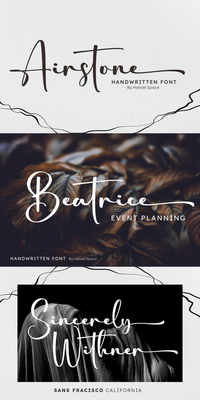 Airstone Handwritten Font with contemporary, sophisticated accents. It is perfect for branding, wedding invites, tagline, cards, maybe for label and logo.
