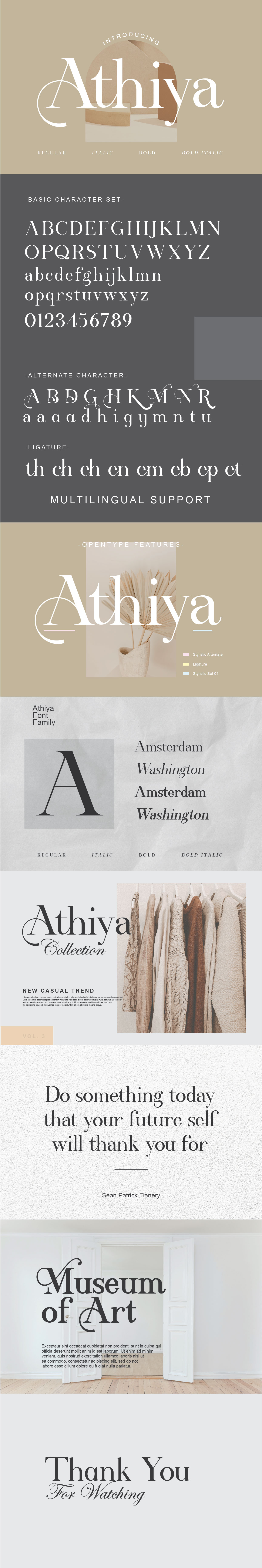 Athiya is a font family with 4 thickness options.