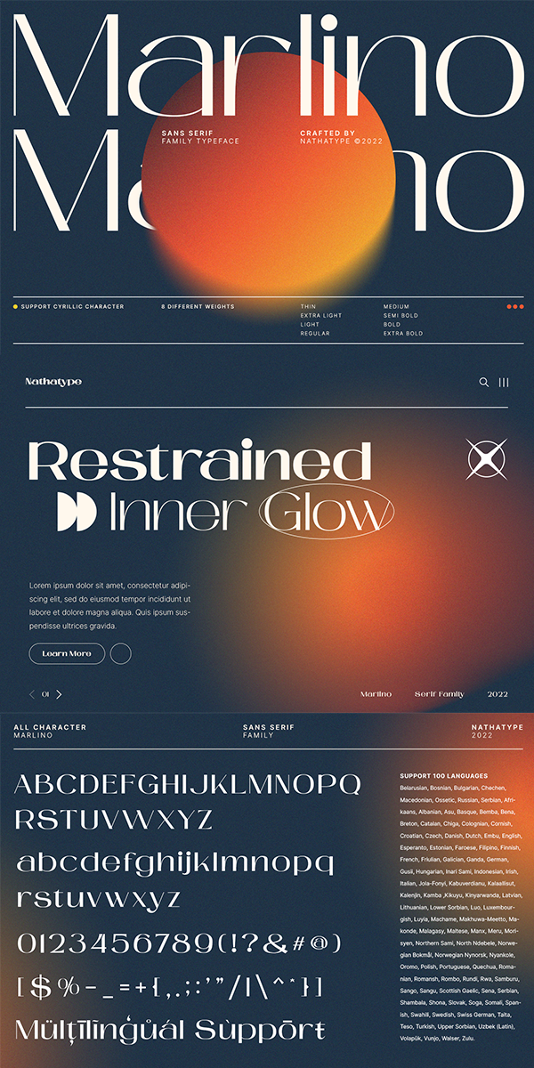 Marlino makes your work got even easier. Marlino is a sans serif font family. It’s simple, modern yet purposely function and definitely helps you achieve favorable design results. There are 8 different styles in this family. This variety in styles and character availability gives you some flexibility in terms of where and when you decide to use it.