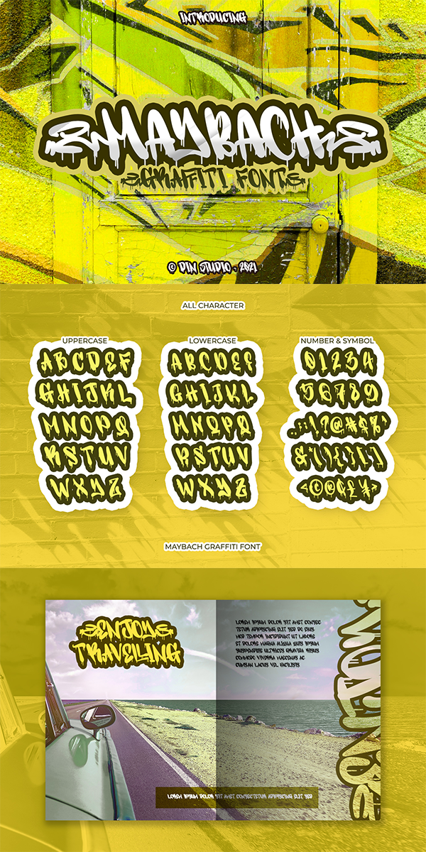 Maybach is a typeface that comes from a captivating uppercase font design combined with a cute bubble aesthetic. This typeface with artistic style looks very interesting for loads of different projects and promotions. A great all-in-one package for your logo, poster, t-shirt, branding, and advertisement needs.
