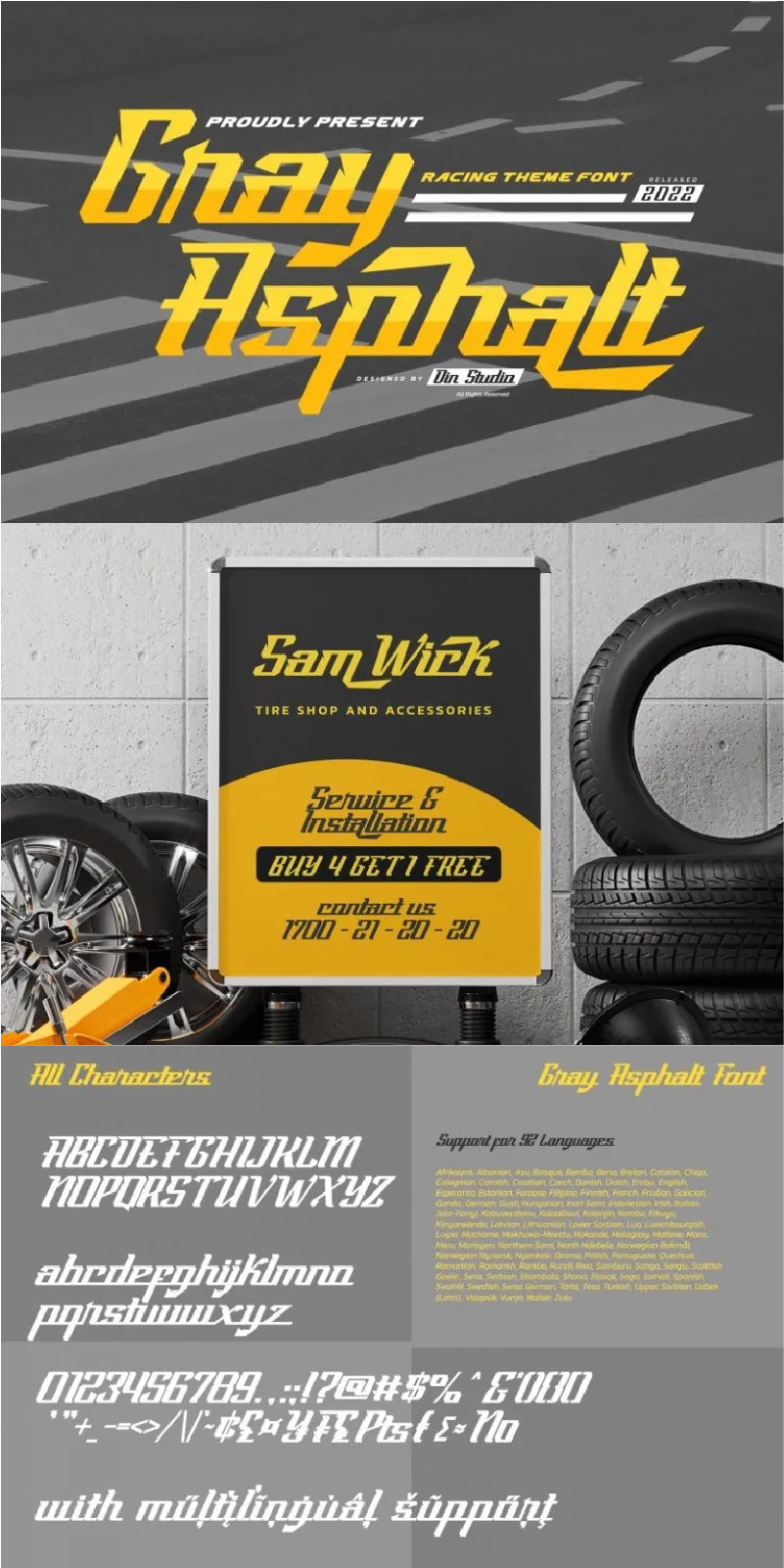Gray Asphalt is a racing-themed script font to give you steady, firm, solid impressions for word or message emphases. Its thick display is suitable to apply on bigger-sized texts.