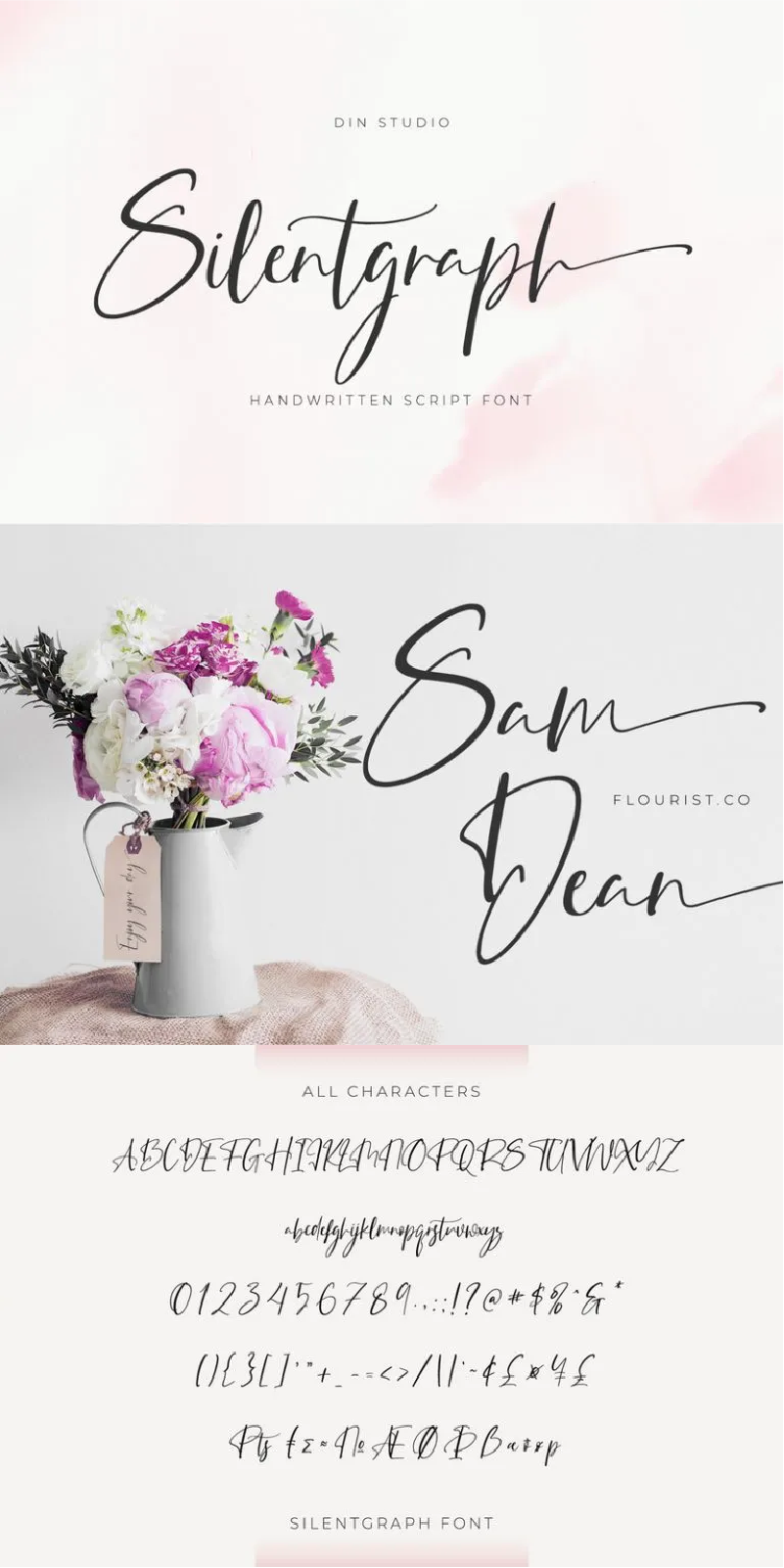 Silentgraph is a script font made from handwriting in lovely designs to make your designs prominent. Every stroke expresses beauty and cursive styles of which letters are interconnected. Details of each letter show curvy wipes and high contrasts on its edges. Use this font for big-sized texts to be legible.
