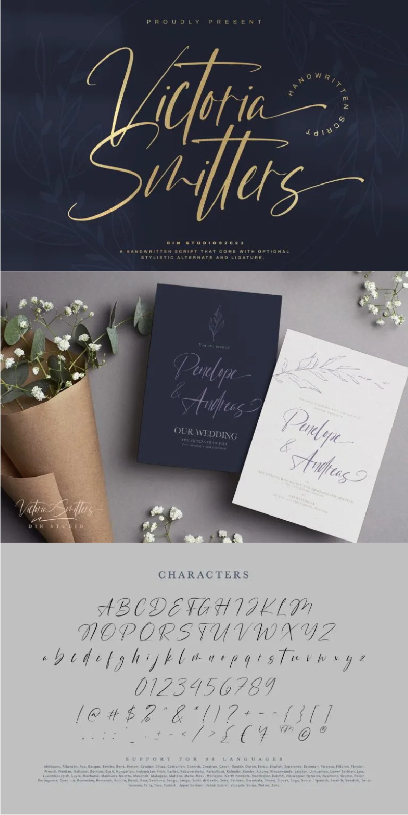 Victoria Smitters is a visually beautiful handwriting font which is perfect to show modern, elegant impressions in a personalized design to impress your customers and to make your messages more prominent than the others. It is designed in a cursive way in which the letters are connected to each other. Details on each letter and cursive wipes on the edges show high contrasts. Furthermore, this font is suitably applicable for big text sizes for better legibility.