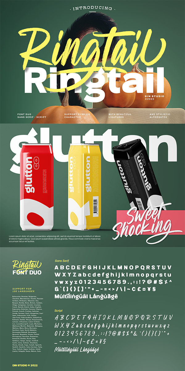 Ringtail fits best for various design projects, such as brandings, posters, banners, logos, magazine covers, quotes, headings, printed products, invitations, name cards, merchandise, social media, etc. Find out more ways to use this font by taking a look at the font preview.
