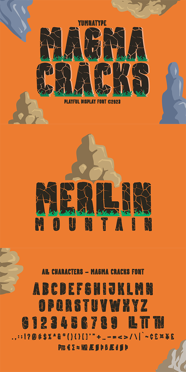 Magma Cracks fits best for various design projects, such as brandings, headings, magazine covers, quotes, printed products, merchandise, social media, etc. Find out more ways to use this font by taking a look at the font preview.