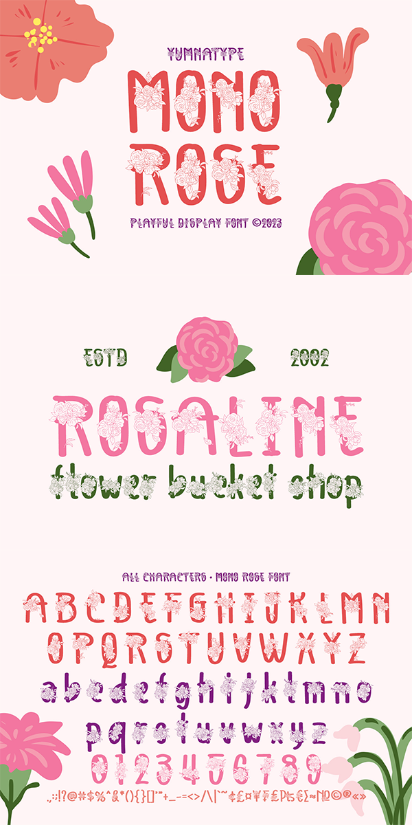 Mono Rose fits best for various design projects, such as brandings, headings, magazine covers, quotes, printed products, merchandise, social media, etc. Find out more ways to use this font by taking a look at the font preview.