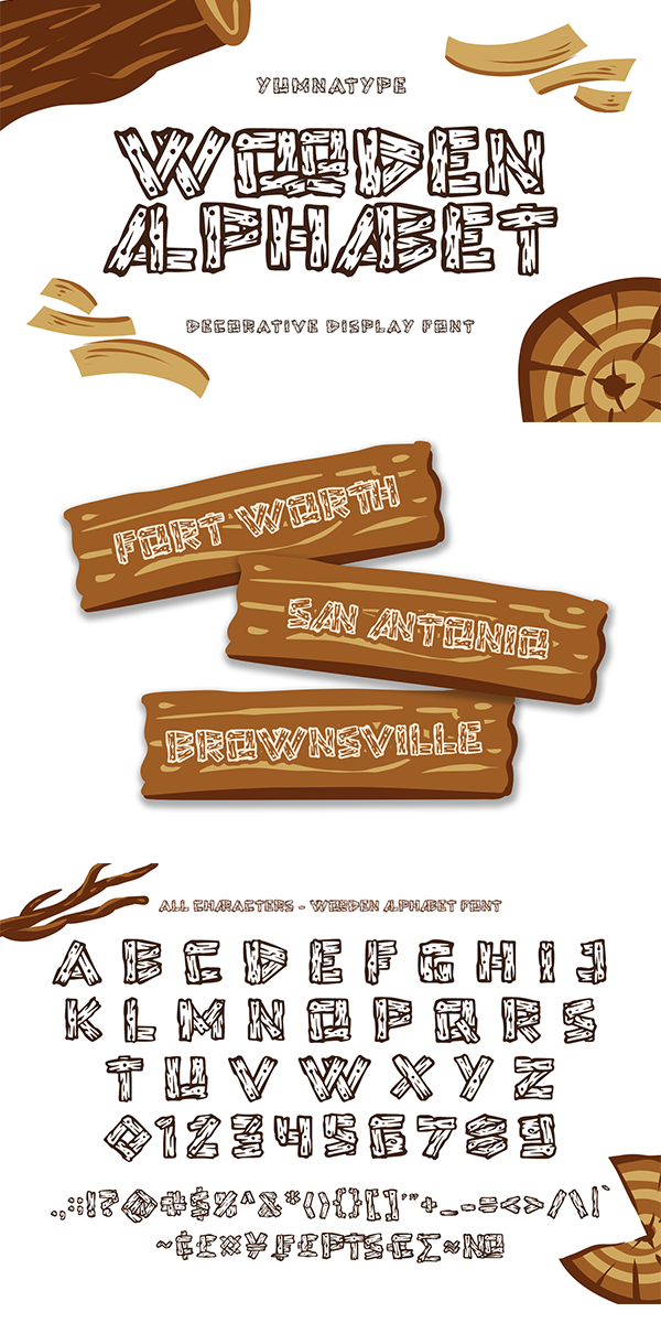 Wooden Alphabet fits best for various design projects, such as brandings, headings, magazine covers, quotes, printed products, merchandise, social media, etc. Find out more ways to use this font by taking a look at the font preview.
