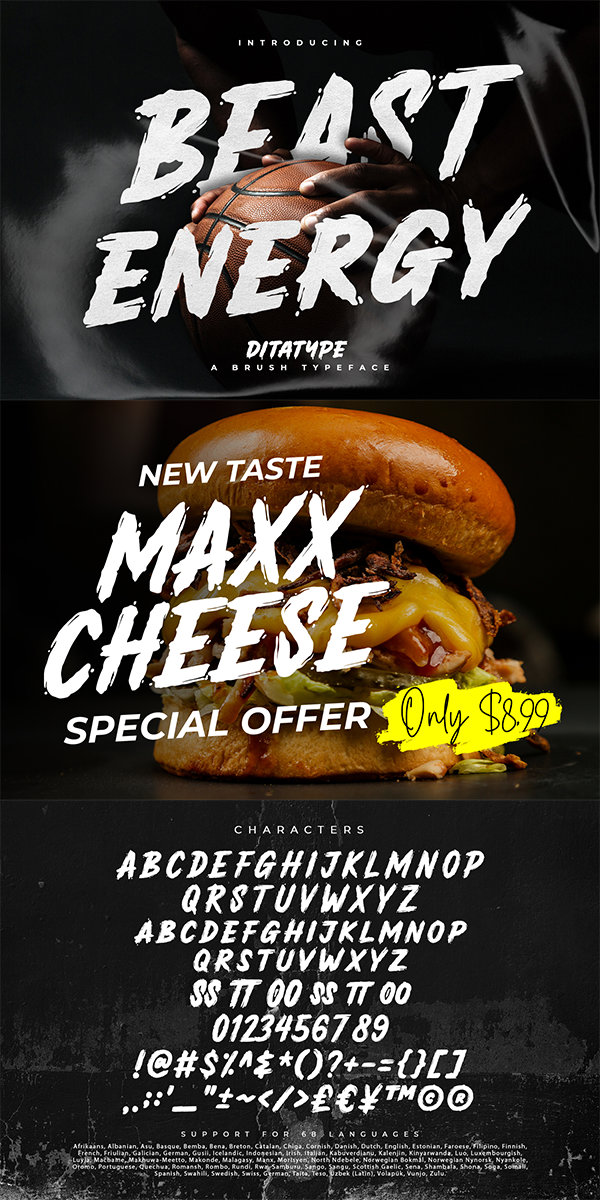 Beast Energy fits best for various design projects, such as brandings, quotes, printed products, merchandise, social media, etc. Find out more ways to use this font by taking a look at the font preview.