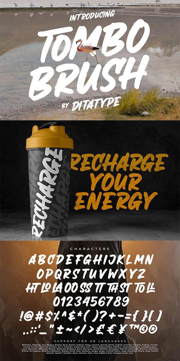 Tombo Brush fits best for various design projects, such as brandings, quotes, printed products, merchandise, social media, etc. Find out more ways to use this font by taking a look at the font preview.