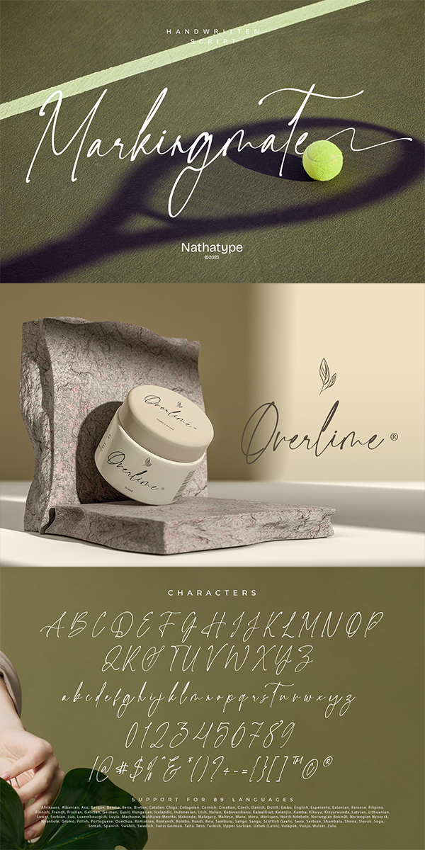 Markingmate fits in headlines, logos, posters, flyers, invitations, name cards, branding materials, print media, editorial layouts, and many more. Find out more ways to use this font by taking a look at the font preview.