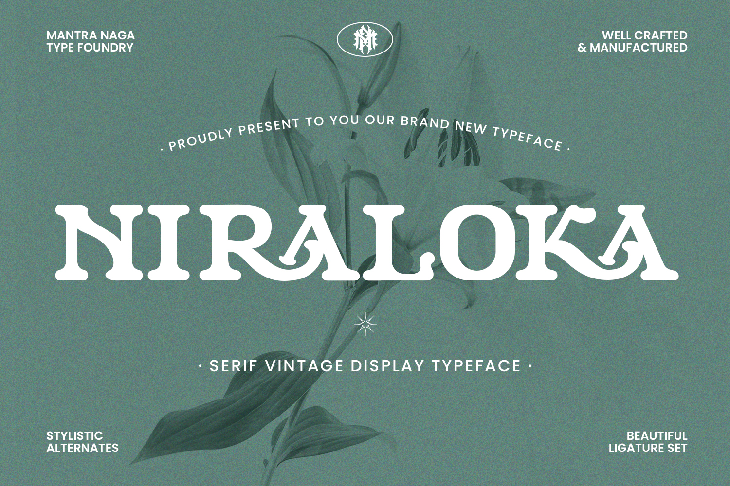 Niraloka font is the perfect embodiment of a display serif style with a distinct vintage touch. With 386 glyphs consisting of capital letters, this font conveys the elegance of a serif in a tone reminiscent of a bygone era. OpenType features that include alternative characters and ligatures provide flexibility for creative and unique design expressions. Support for 84 international languages makes Niraloka a highly inclusive choice for global design projects, combining the visual charm of a bygone era with modern demands.