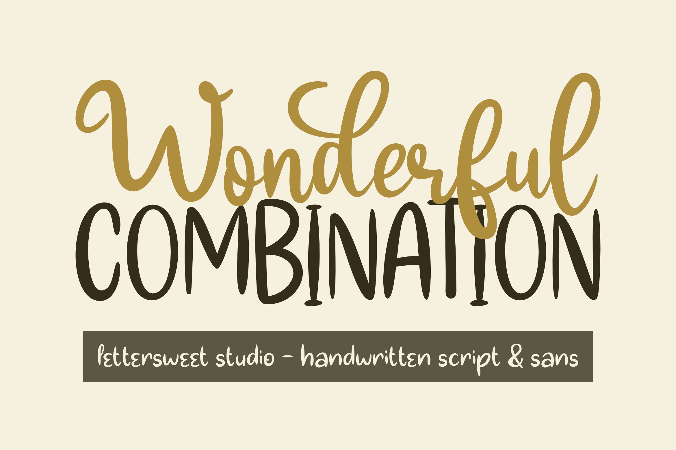 Wonderful Combination is a duo script and display font. This font is created directly with hand scribbles. It has a casual, yet elegant touch. Masterfully designed to become a true favorite, this font has the potential to bring each of your creative ideas to the highest level!