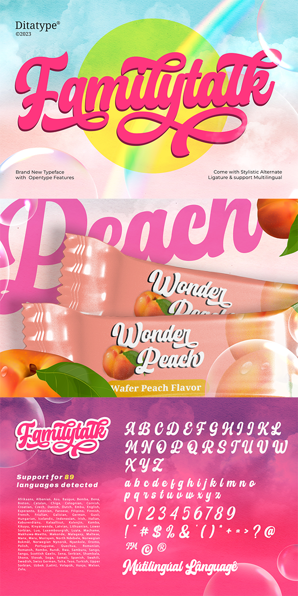 Despite its thick weight, Familytalk maintains excellent legibility, making it suitable for a wide range of creative applications. Its ability to strike a balance between boldness and grace makes it a versatile choice for projects that demand a strong and stylish script font. In addition, enjoy the features here.