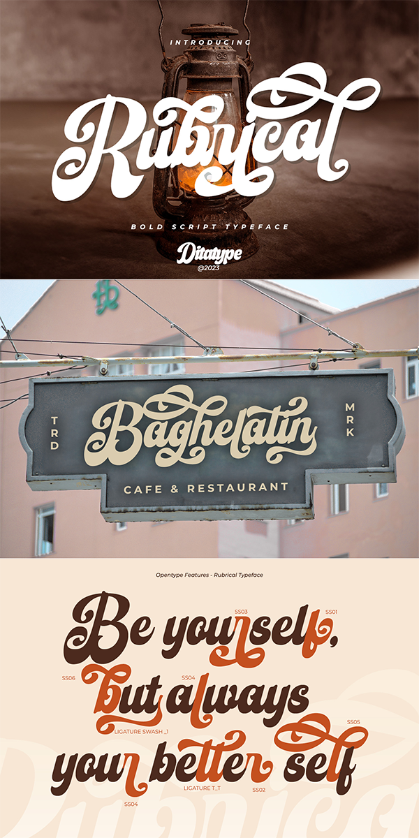Rubrical, a script font that gives personalized feel to the design with a confident presence. This typeface is characterized by its substantial weight, giving your design a bold and impactful appearance. Rubrical maintains consistent proportions across all its letters, offering a sense of stability. It also adds a sense of warmth and personality.