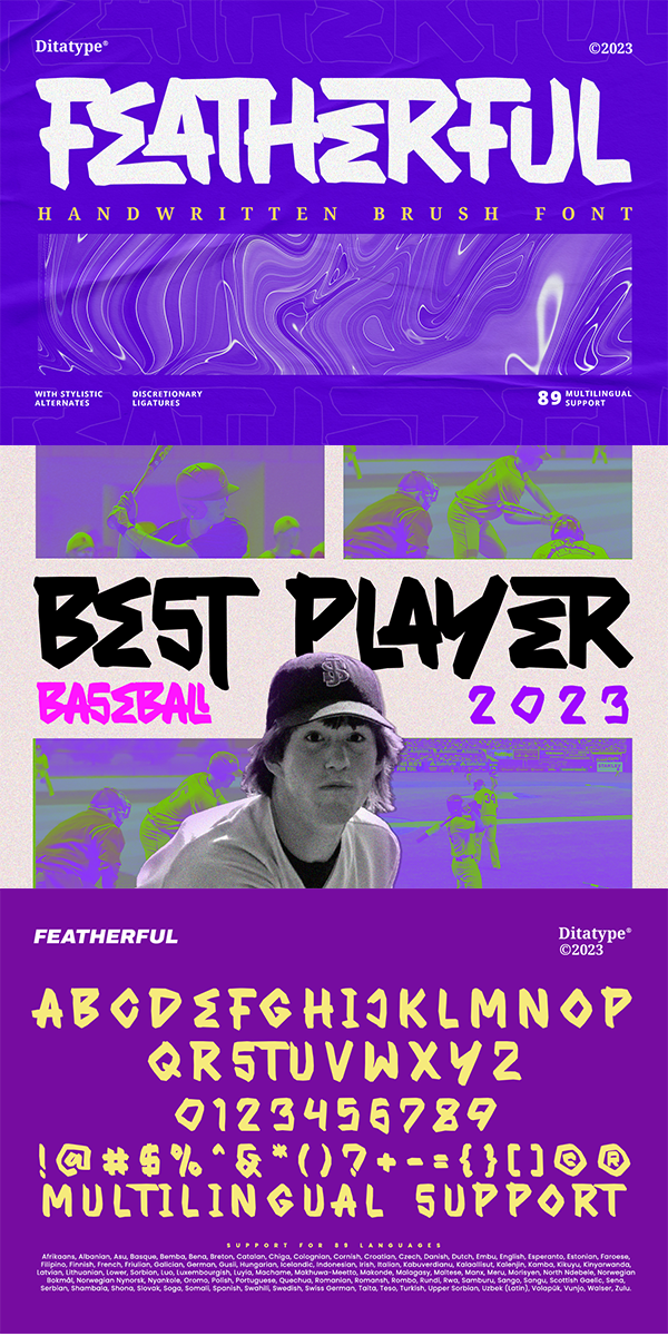 The characters in Featherful boast generous proportions, ensuring a visually striking impact in any design. The thick weight enhances the font’s presence, making it suitable for various creative applications. What sets Featherful apart is its rounded letter shapes, creating a friendly and approachable vibe. The details within each letter mimic the expressive strokes of a paintbrush, adding an authentic and artistic touch. Enjoy the features here.