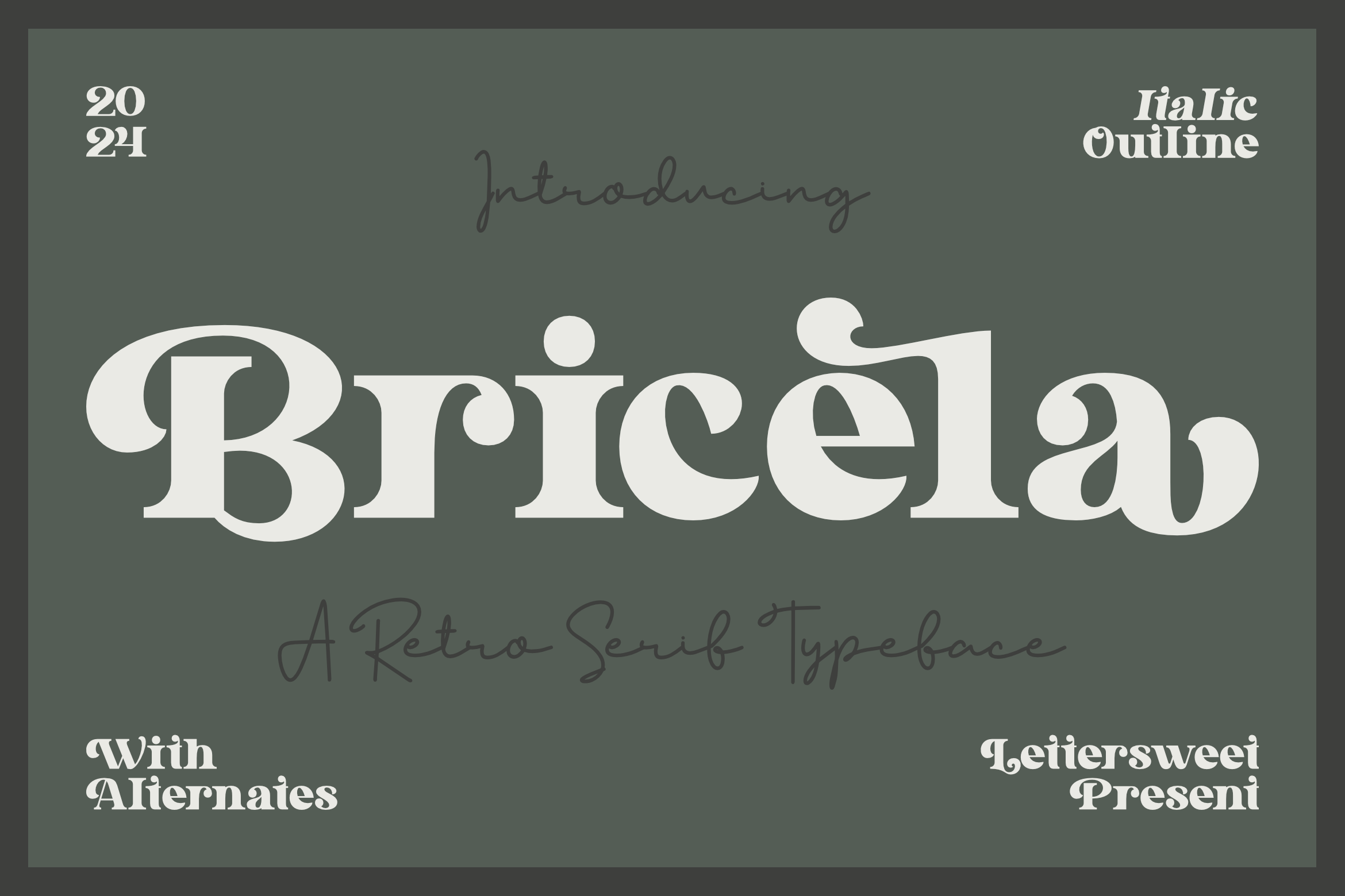 Bricela feels playfully nostalgic and delivers an incredible vintage aesthetic. Use this serif font to add that special retro touch to any design idea you can think of!