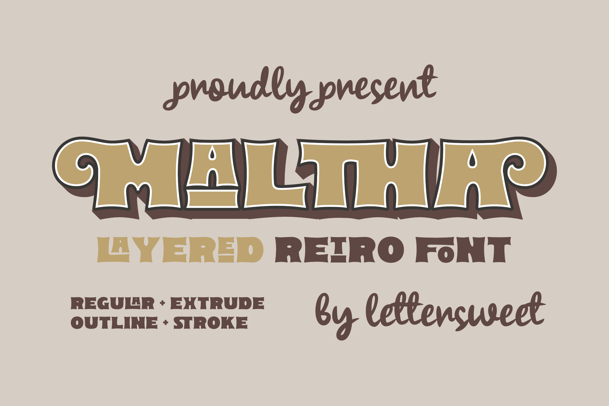 Take a nostalgic journey with the Maltha font, a robust, retro-inspired serif display typeface. This assortment includes four distinct variations: regular, italic, and shadow version. Effortlessly infuse a bygone-era vibe into your design concepts with Maltha. From logos and stickers to package designs and Cricut projects, the bold lines and curves of Maltha navigate beautifully. It effortlessly lends itself to headlines, brand identities, and even t-shirt or apparel design. Make your posters pop, book covers resonate, and magazines mesmerize. Elevate your digital platforms, including YouTube, Instagram, and websites, with this chic, vintage font.