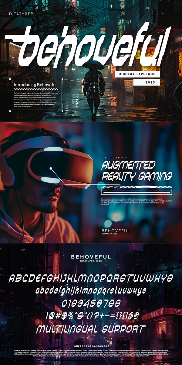 The uneven outline of Behoveful adds an element of visual interest and depth, further enhancing its futuristic allure. This irregularity in the outline creates a sense of movement and energy, making each character feel alive and dynamic. Enjoy the features here.