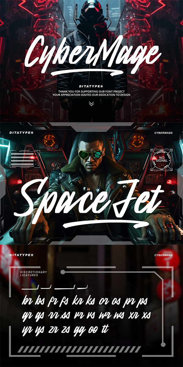 Every stroke of Cyber Mage is imbued with futuristic elements, inspired by the sleek lines and dynamic energy of technological advancements. From the gentle curves to the sharp angles, each letter evokes a sense of innovation and modernity, while maintaining the fluidity and elegance of a script font. The fusion of futuristic and techno styles in Cyber Mage creates a unique visual language that captures the imagination and commands attention. In addition, enjoy the features here.