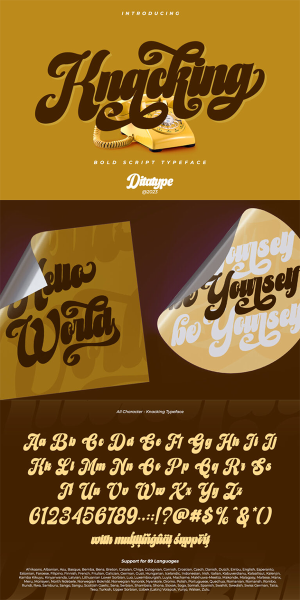 What sets Knacking apart is its striking swinging endings on select letters, infusing a touch of whimsical sophistication into your text. These unique flourishes add a dynamic quality to your words, allowing your message to capture attention with a dash of charm. In addition, enjoy the features here.