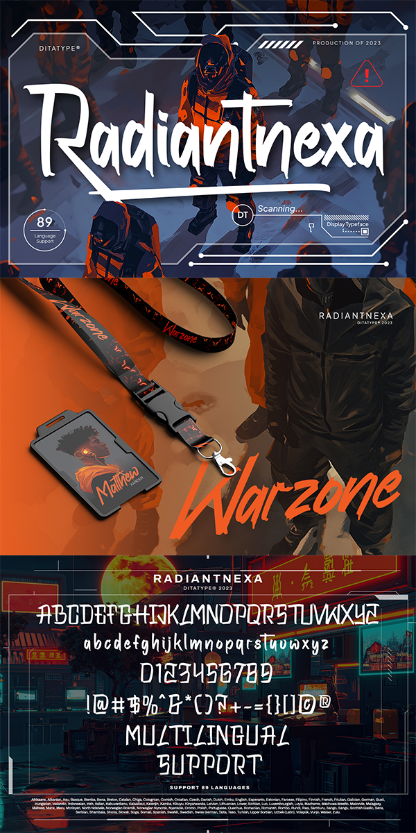 Radiantnexa fits in headlines, logos, posters, flyers, technology branding, sci-fi book covers, futuristic UI/UX design, editorial layouts, and many more designs. Find out more ways to use this font by taking a look at the font preview.